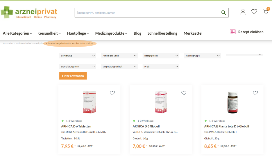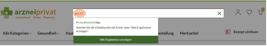 Geben Sie diese PZN in das Suchfeld ein und bestätigen Sie bitte mit Enter. Der Artikel wird Ihnen dann angezeigt.